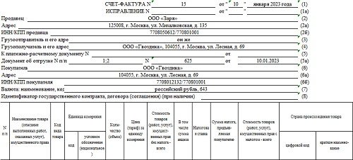Пример заполнения новой счет фактуры