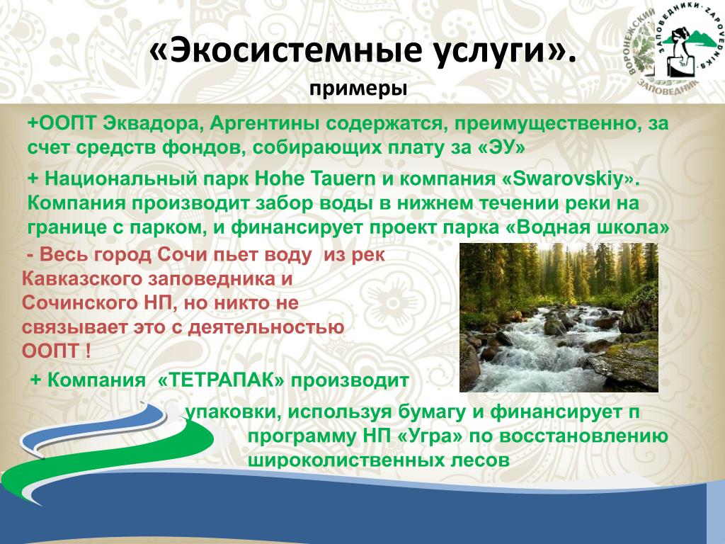 Примеры экосистемных услуг