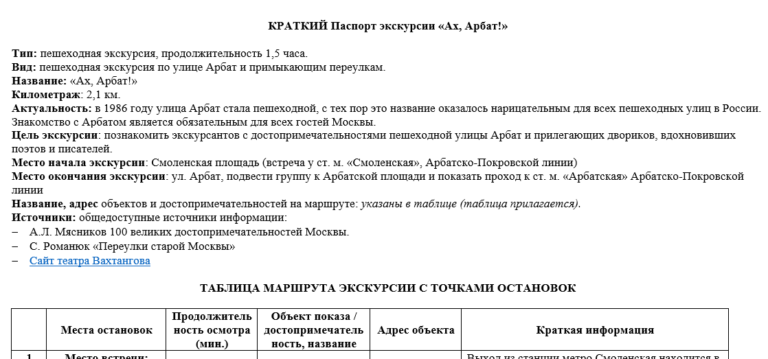 Примеры экскурсий по городу