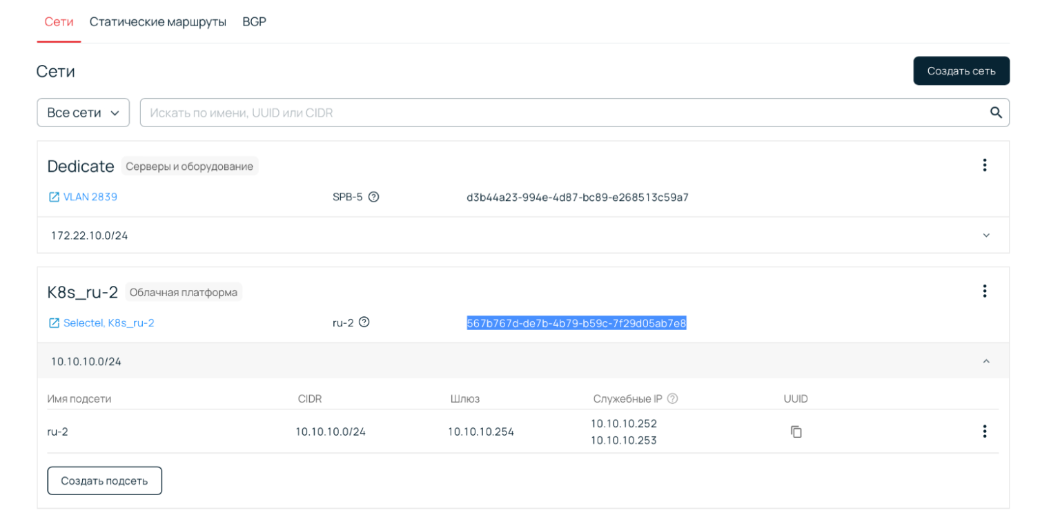 Примеры настройки сети