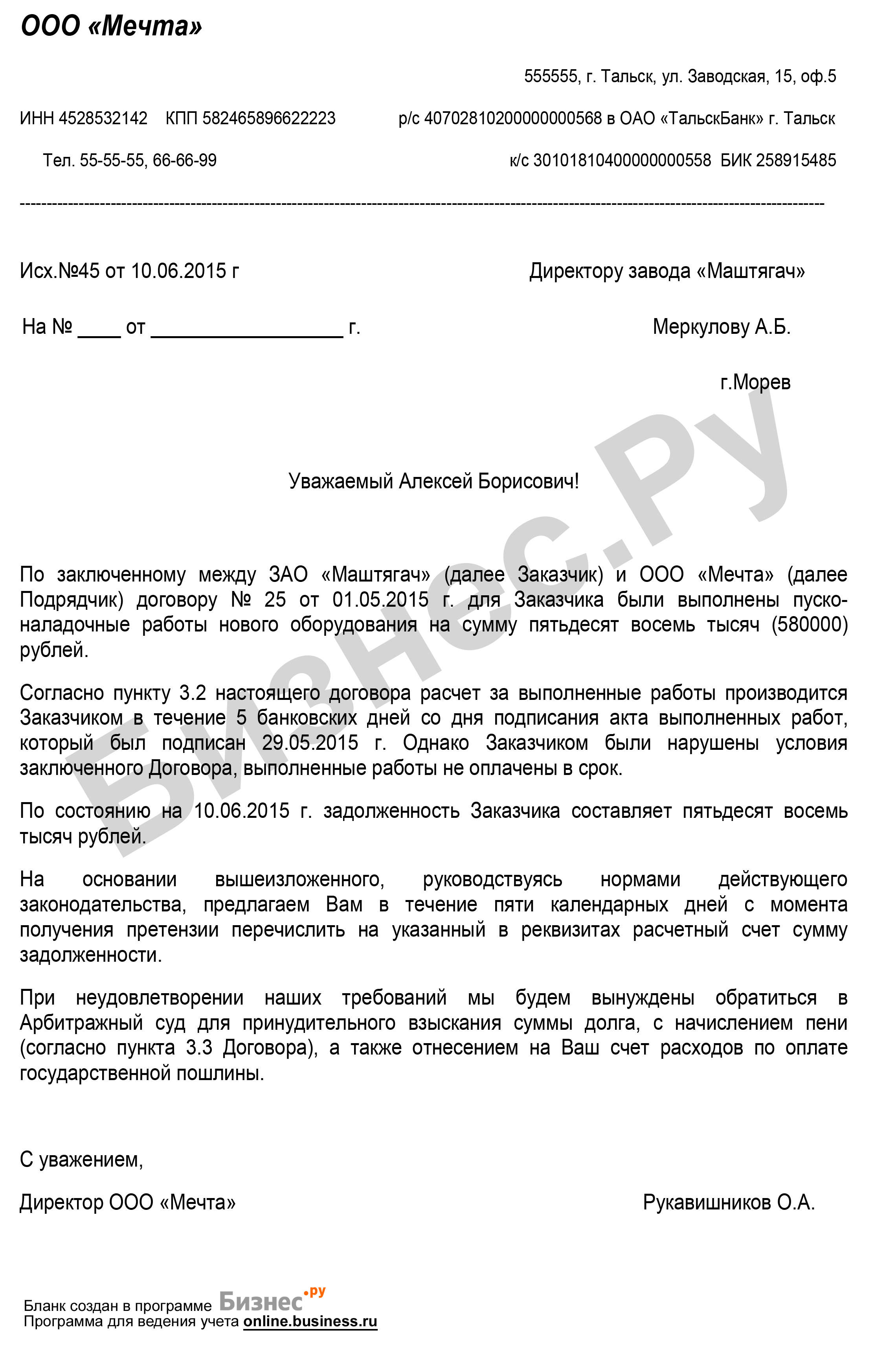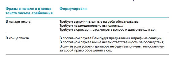 Примеры письма требования