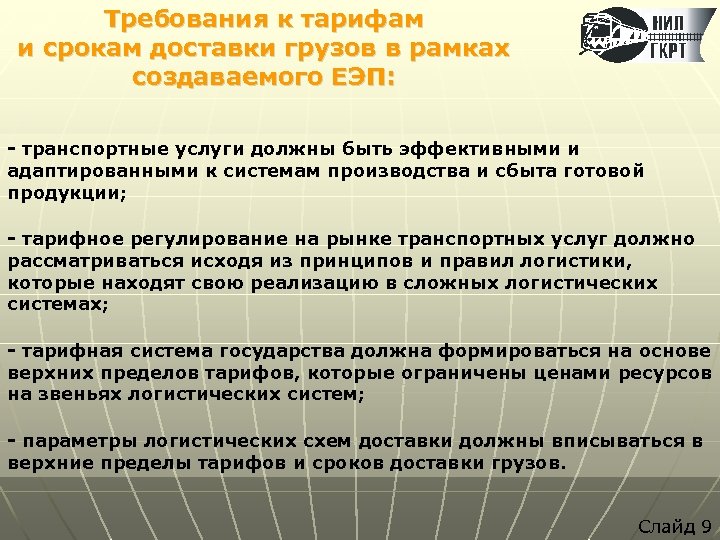 Принципы формирования тарифов