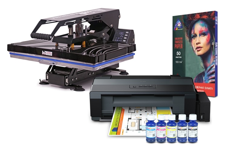 Для печати на кружках, футболках и т . д . мы рекомендуем купить сублимационный принтер А4 Epson L132 или A3 Epson L1300 со встроенной СНПЧ .