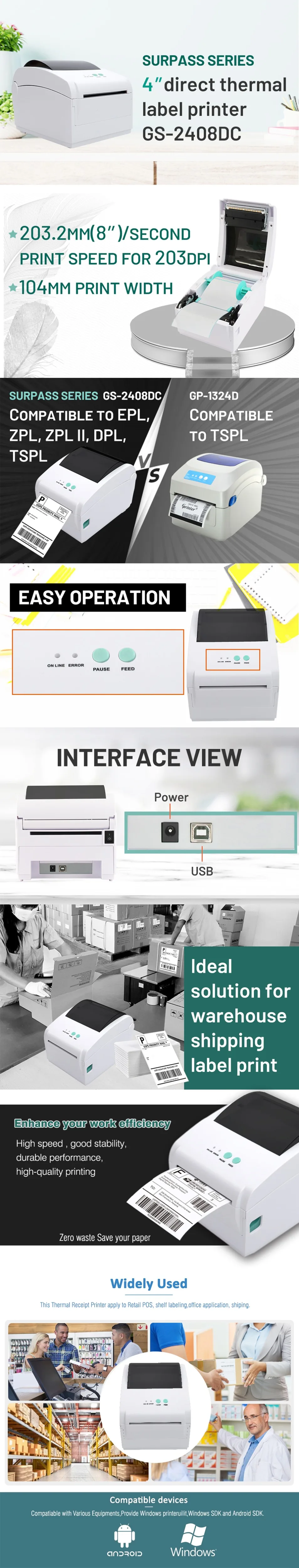 Подробные характеристики модели Принтер этикеток термо GPrinter GS -2408D/UE — с описанием всех особенностей . А также цены, рейтинг магазинов и отзывы покупателей .