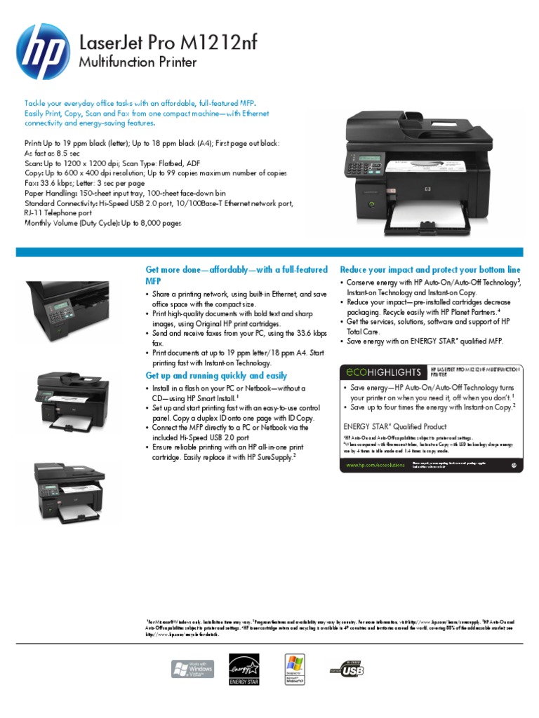 Download the latest drivers, firmware, and software for your HP LaserJet Pro M1212nf Multifunction Printer .This is HP's official website that will help automatically detect and download the correct drivers free of cost for your HP Computing and Printing products for Windows and Mac operating system .