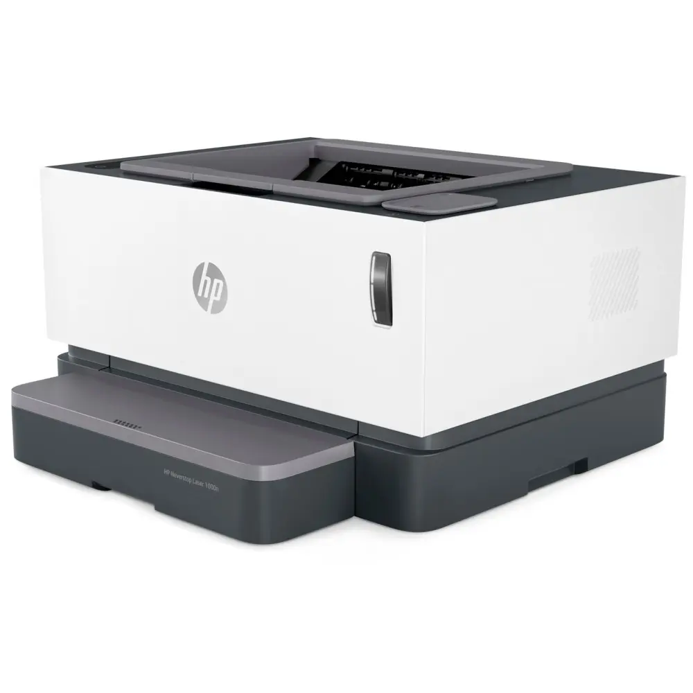 Лазерный монохромный принтер HP Neverstop Laser 1000n 5HG74A формата A4 поддерживает скорость монохромной печати 20 стр/мин, печать по локальной сети, объем встроенной памяти составляет 32 МБ .