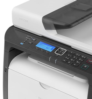 Ricoh SP 325SNw — A4 (210 x 297 мм) 28 стр . / мин . 128 Мб ЖК-дисплей Принтер с МФУ лазерный монохромный Wi-Fi, USB 2 .0, RJ-45 двусторонний податчик оригиналов