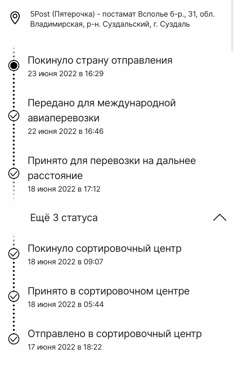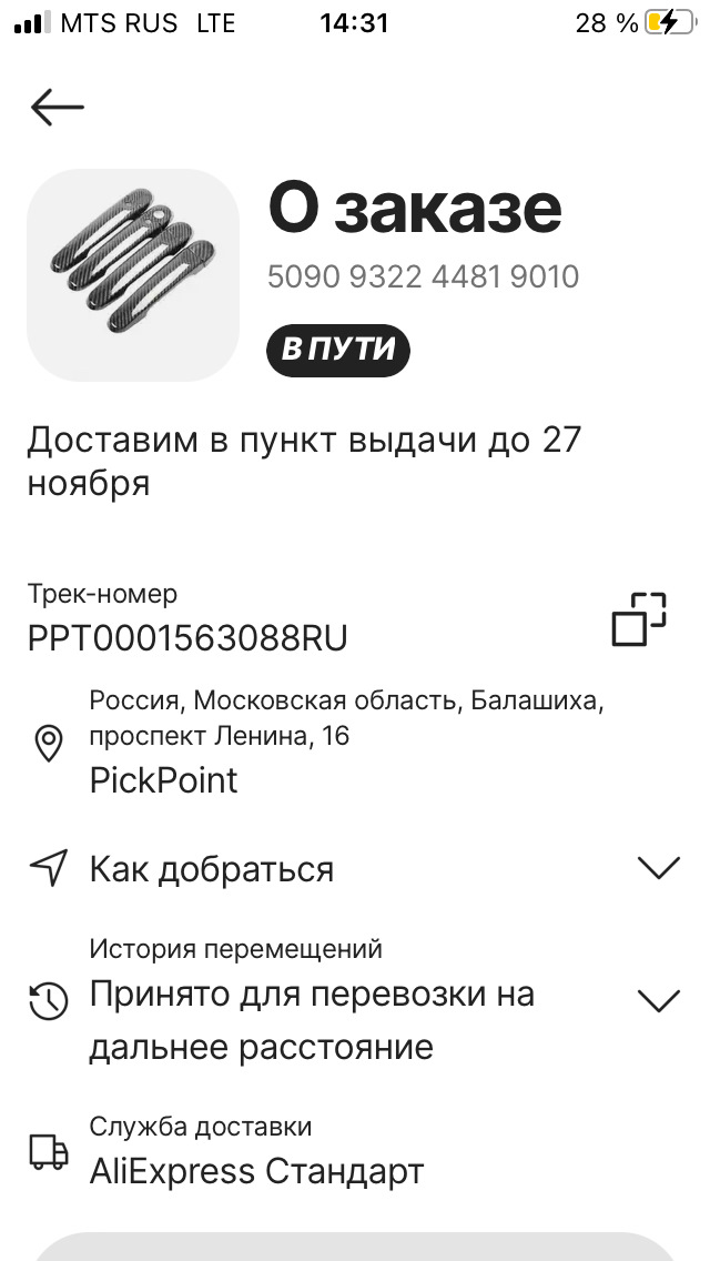 Принято для доставки