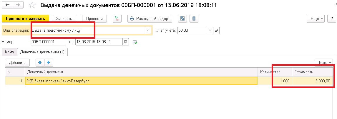 Приобретены денежные документы