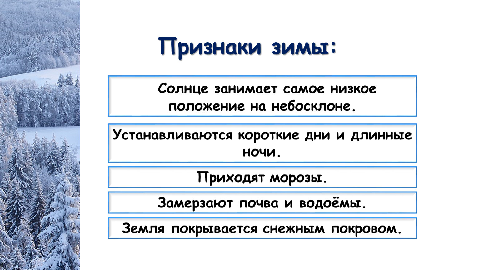 Природные признаки зимы