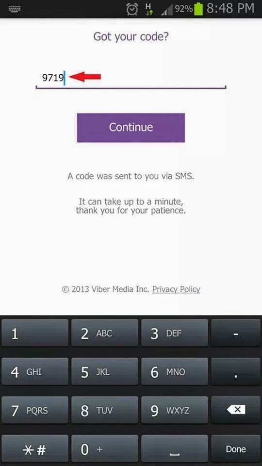 Прислали код вайбер