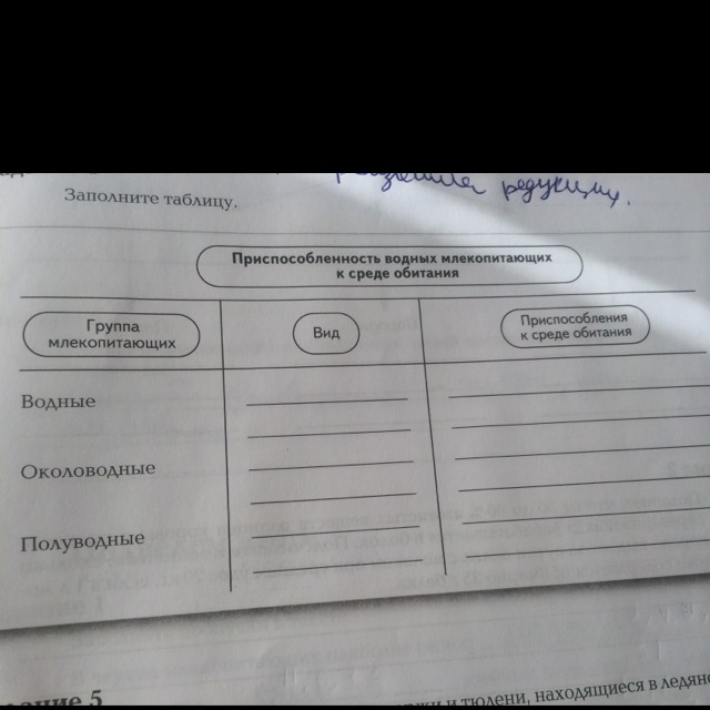 Приспособленность млекопитающих к среде обитания таблица 107 фото