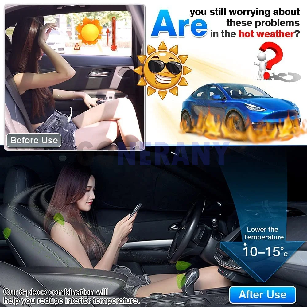 Privacy Sunshade for Tesla Model Y 2020-2023 Accessories Windshield Rear Side Window Full Set Car Sun Shades Blocks UV Rays 8PCS - Купить с бесплатной доставкой