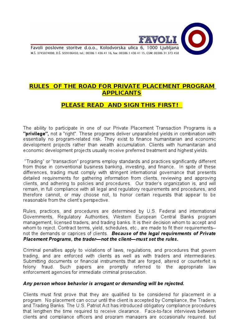 Private Placement Program
