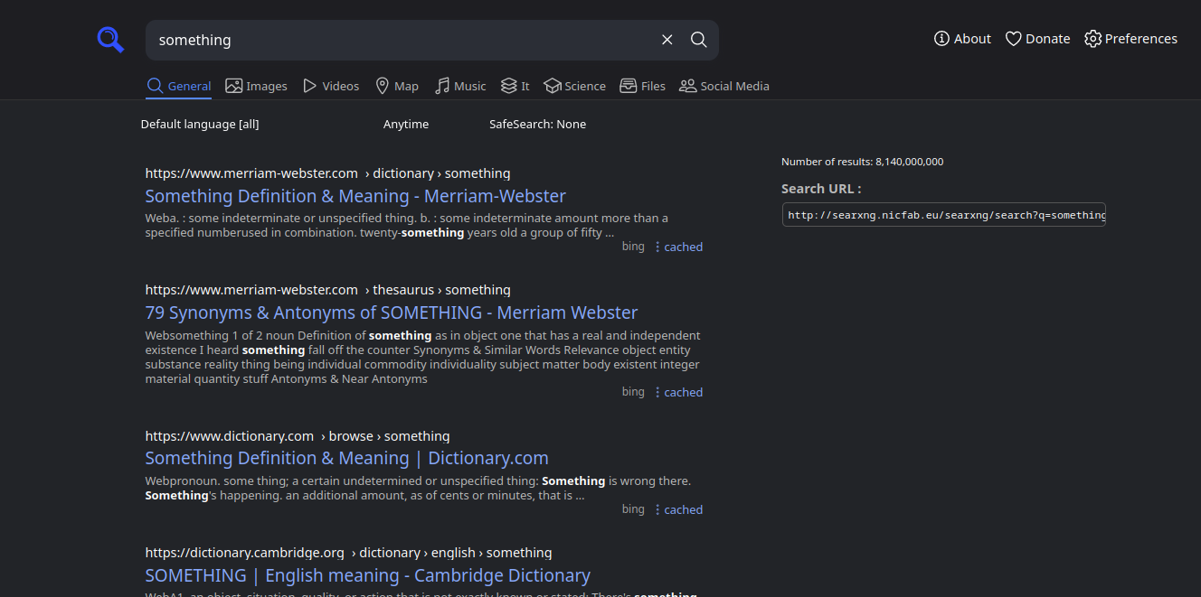 Это самый приватный поисковик, который себе можно представить. Дело в том, что это поисковик с полностью открытым исходным кодом, который нужно хостить самостоятельно. К счастью, вам это делать не обязательно, ведь есть десятки энтузиастов, готовые хостить поисковик у себя. Вам лишь остаётся выбрать понравившийся сервер.