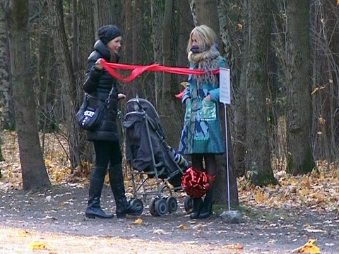 Привязанная к дереву в московском парке женщина с . . .