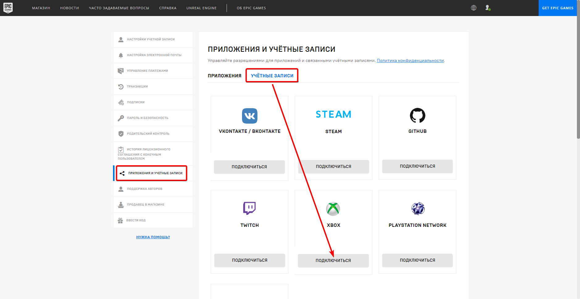 Привязка аккаунтов epic games