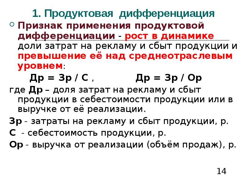 Признаками дифференциации продукта