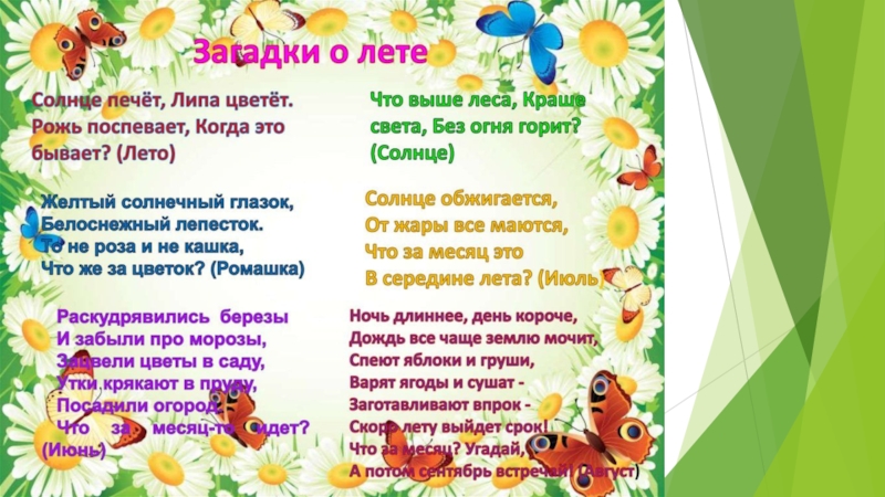 Признаки лета презентация, доклад, проект