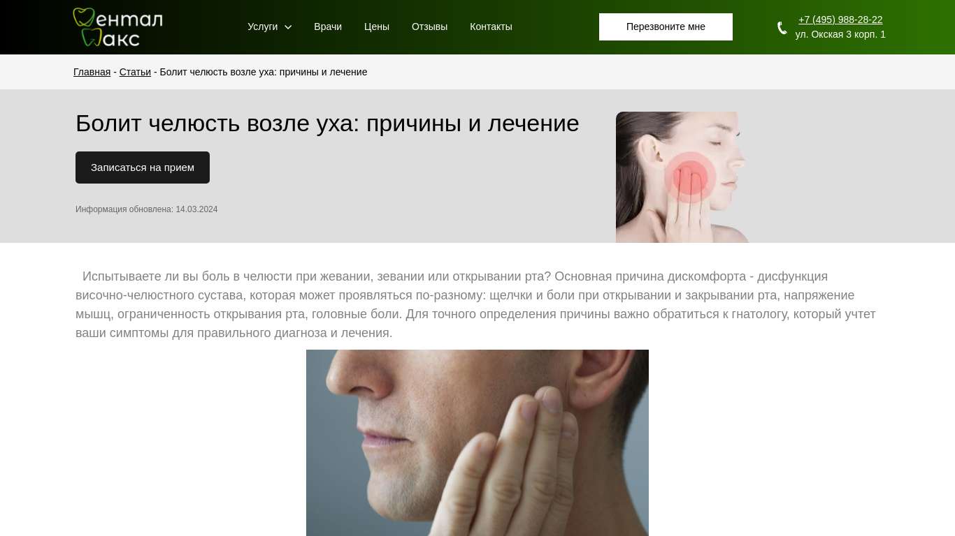 Признаки боли челюсти