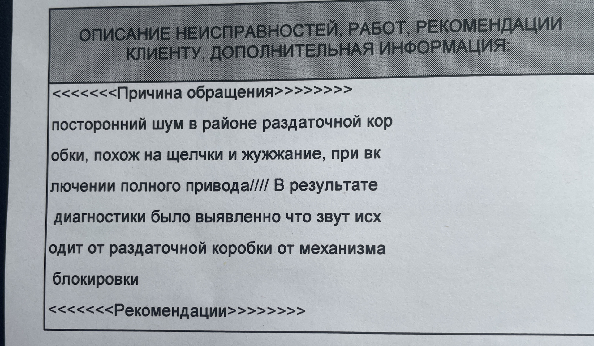 Признаки неисправности раздатки