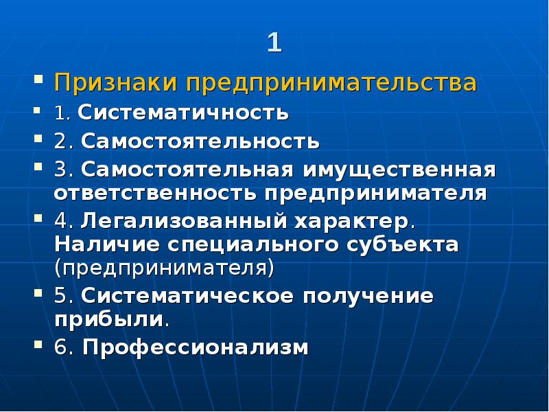 Признаки предпринимательства примеры