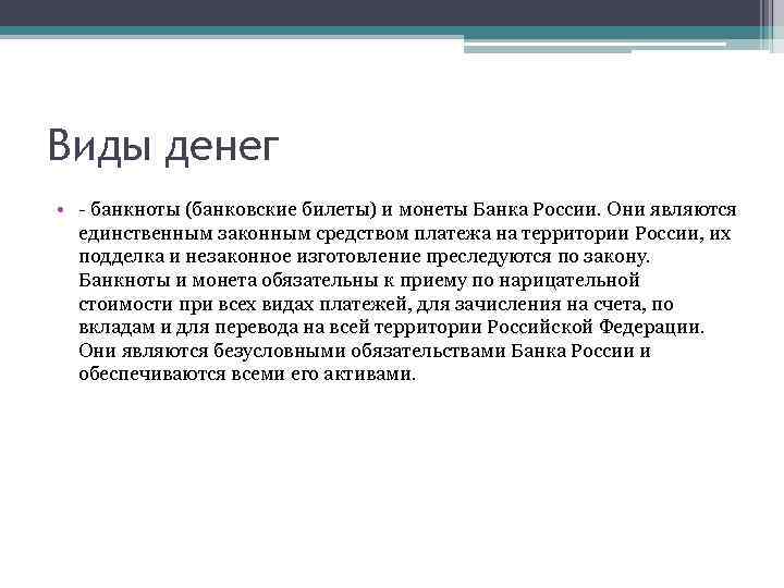 Признаки средства платежа