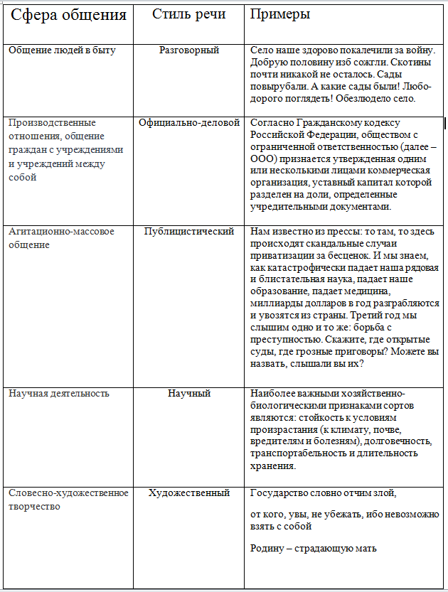 Признаки виды и стили текста