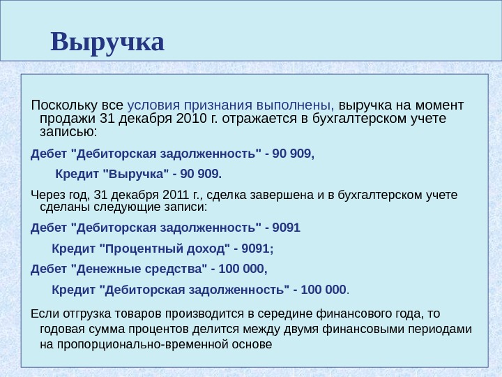 Признание выручки проводка