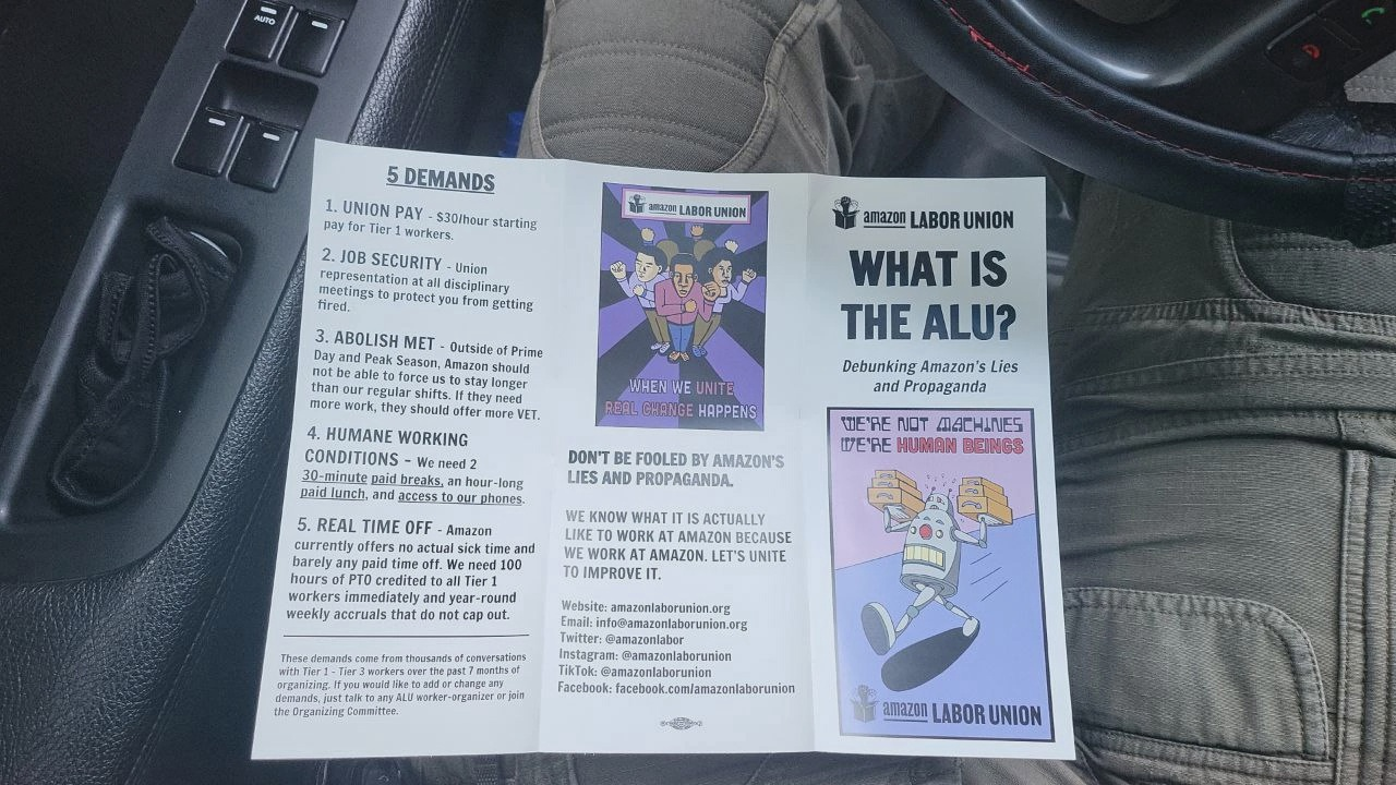 Но вернёмся к Сиэтлу. Сам факт, что здесь — в самом сердце Амазона — раздают буклеты профсоюза, уже радует. Что же требуют амазоновские профсоюзники: