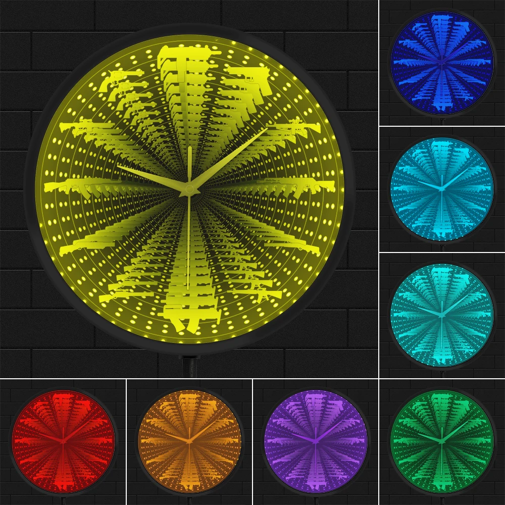 ETVdCOwLEfHere you can buy Pro Guns LED Neon Sign Clock Glow In Dark Tactical Army Rifle Ammo Variety Weapons LED Infinity Mirror Wall Clock For Man Cave with free delivery to your post office.