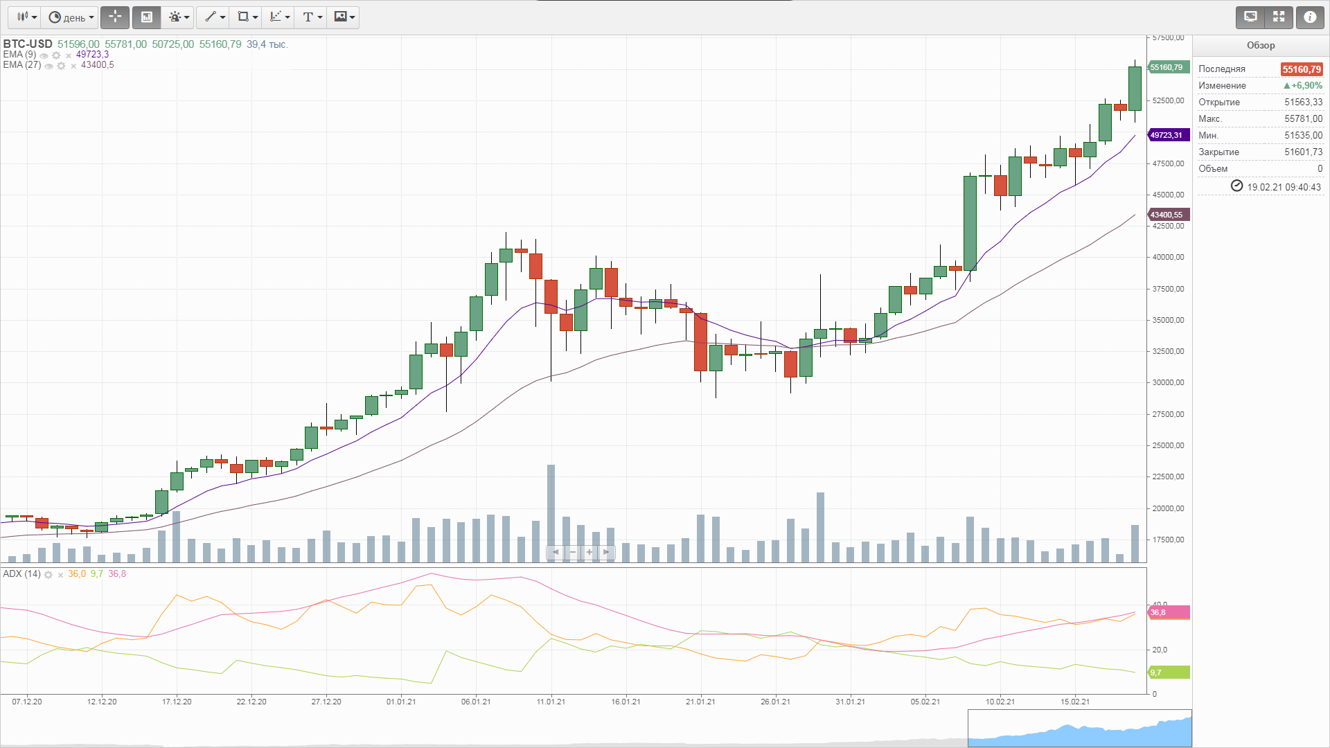 Дневной график также перекуплен. Допускаю импульс в район 58-59к, но 35-40 вопрос недалекого времени 2-4 недели. У меня прям дежавю с декабрем 2017 года, включаешь утюг, а оттуда про биток вещают. Пошел за попкорном.