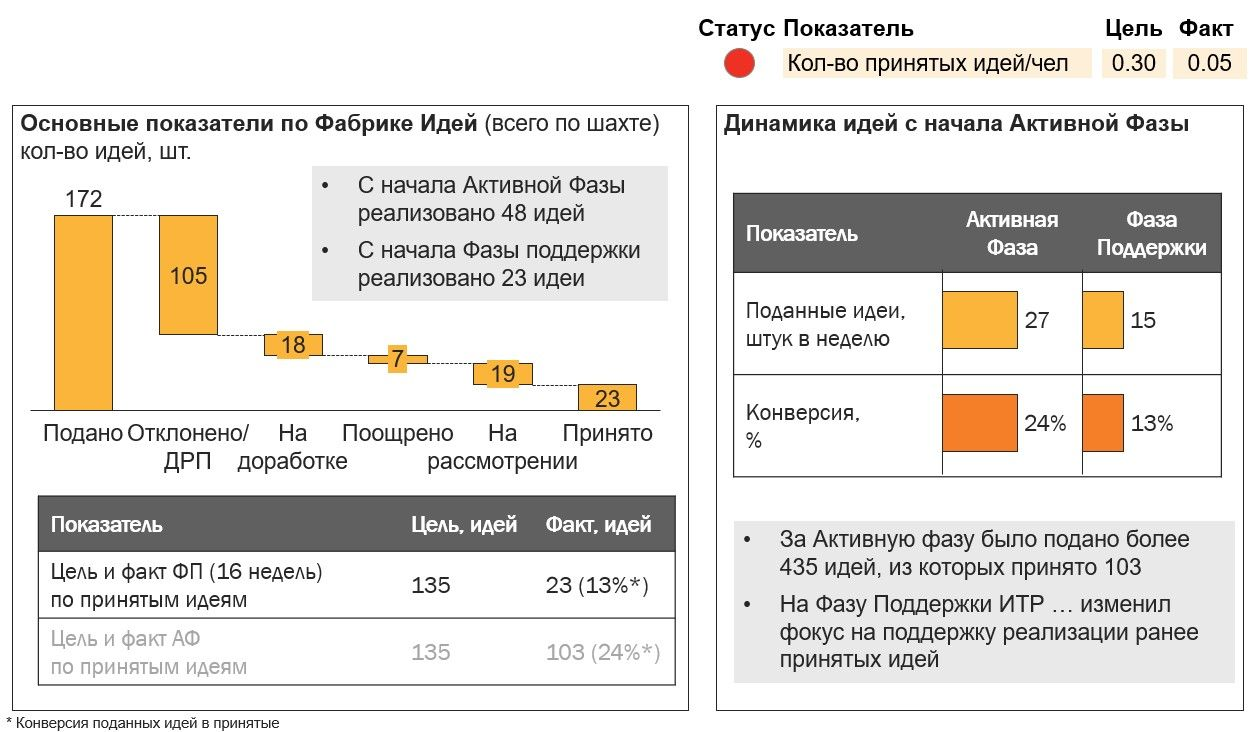 - Количество внедренных идей