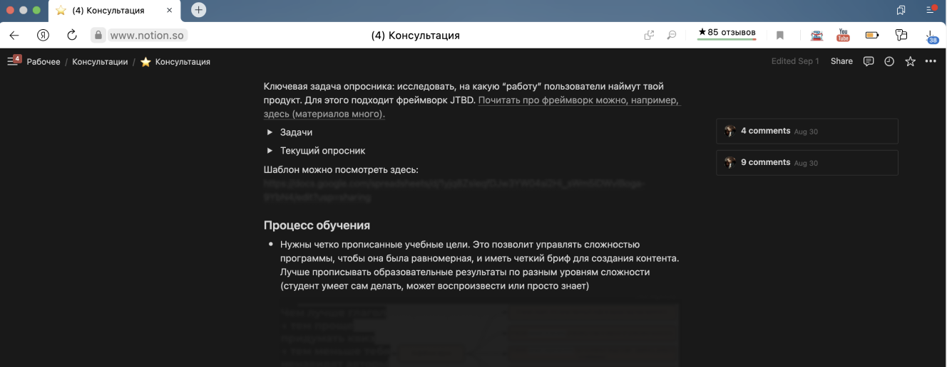 - После встречи я собираю для вас страничку с тем, что мы обсудили, добавляю полезные материалы, если нужно, или контакты других специалистов, если на это есть запрос. У вас на руках остается выжимка информации, на которую можно опираться в дальнейшем.