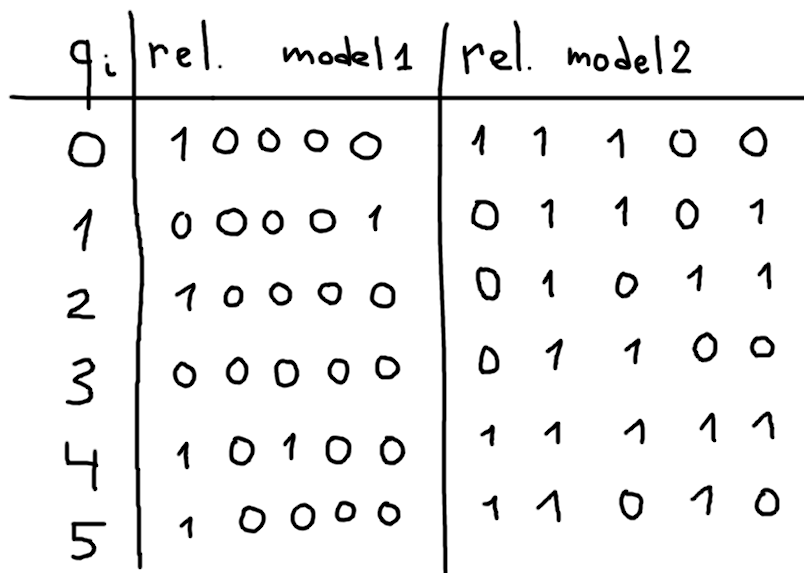 В каждой строке i показаны топ-5 ближайших объектов к query_i, слева направо. Единица обозначает то, что объект той же категории, что и query, иначе ноль.