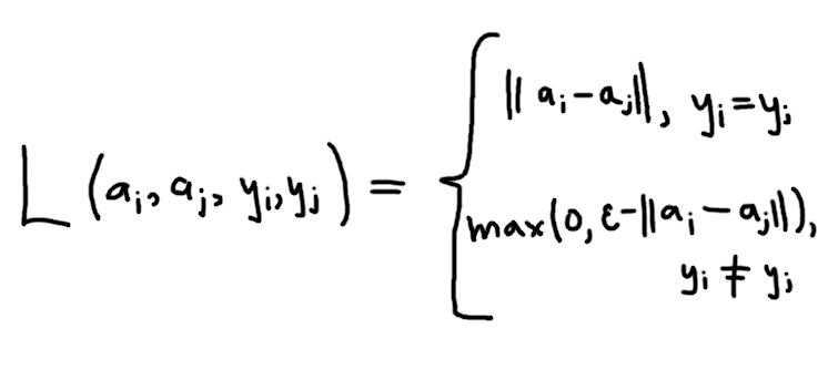 Как я уже говорил, существует как минимум несколько больших групп по лоссам: основанные на триплетах, основанные на парах и все остальные. Лоссы, основанные на парах пытаются напрямую оптимизировать постановку задачи: если объекты в паре принадлежат одному классу, то мы стараемся притянуть их друг к другу, если наоборот — разнести их как можно дальше. Самый простой и банальный парный лосс буквально делает это: