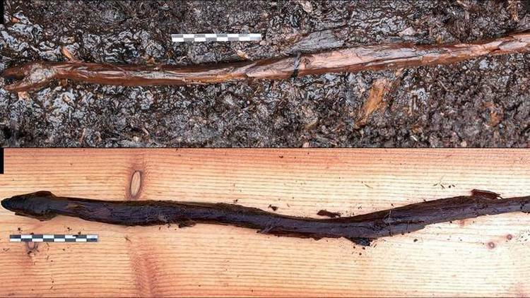 Интересно, что у наших змеек оказались родственники на далеком севере. В 2020 году в Финляндии в Ярвенсуо обнаружили полуметровую деревянную фигурку в виде змеи, которую после открытия успели окрестить шаманским посохом. Радиоуглеродная датировка показала, что финский посох был изготовлен в 39-м столетии до нашей эры.