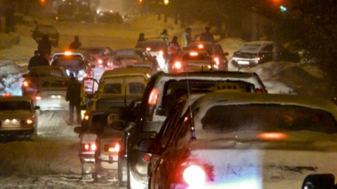 Огромная пробка на мосту в Костроме окрасила Заволжье в . . .