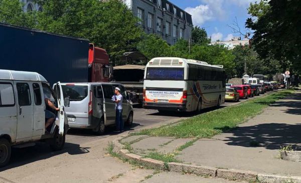 Сегодня 28 июня с самого утра в городе Николаеве образовалась грандиозная пробка . Заблокированными оказались центральные улицы . На Большой Морской не работали светофоры, в очереди на выезд на Варваровский мост замерла длиннющая вереница машин .