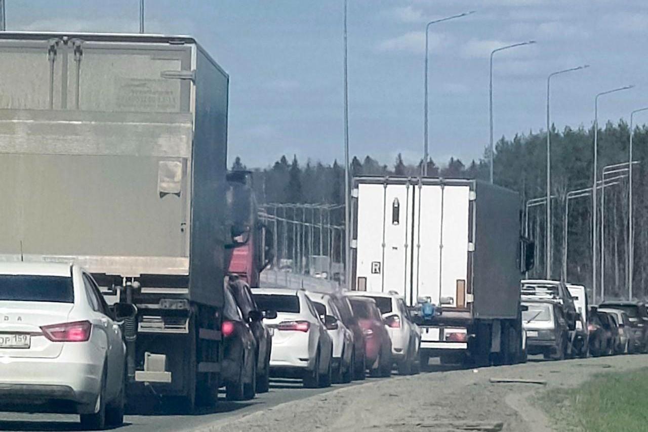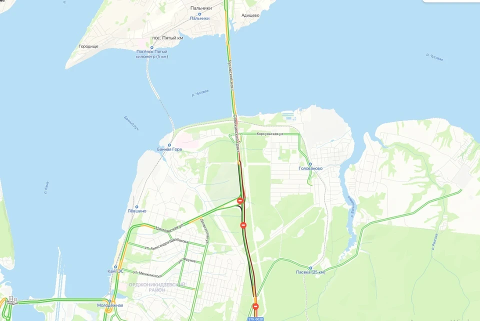 Пробки на чусовском мосту