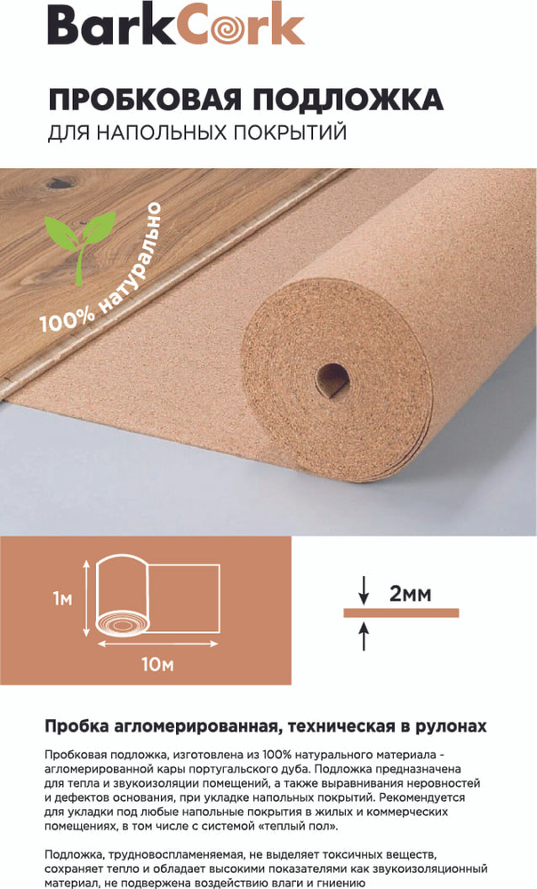Пробковая подложка 2мм ламинат