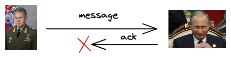 И на самом деле это не решаемая проблема в том виде, в котором она поставлена! Сколько бы мы сообщений не отправляли, в каком бы формате – хоть одновременно по сто сообщений с двух сторон, У НАС НЕТ ГАРАНТИЙ.