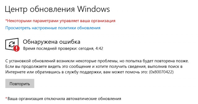 Проблема обновления виндовс 10