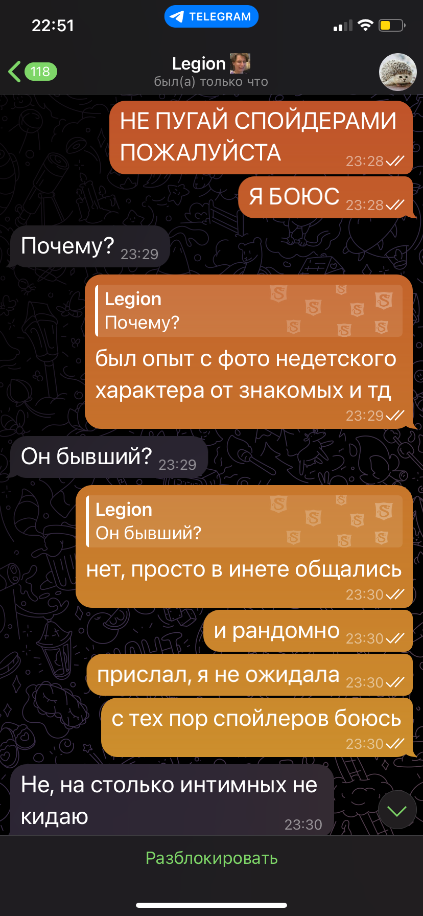 Я постаралась отшутиться и подумала, что на этом конец диалога, но через несколько минут спустя в телеграмм приходить снова сообщение от дезноута: