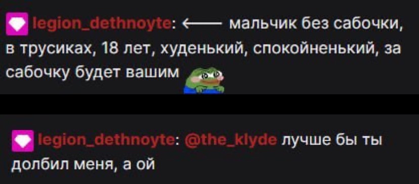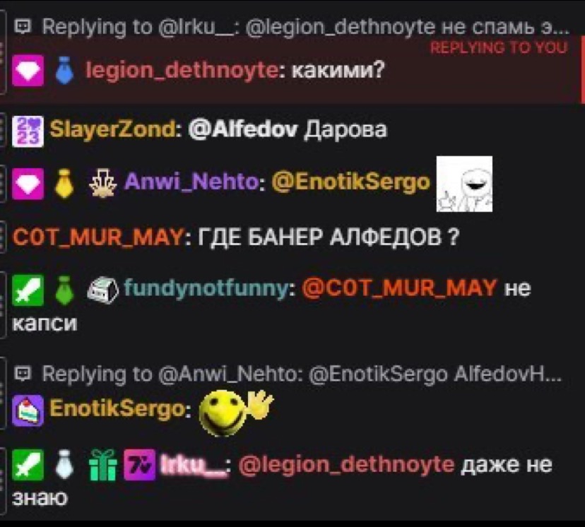 Дезноут по большей части зритель Секби, но часто перебирается из чата в чат. Менее года назад (зимой 2023 года) мы начали общаться в чате Алфёдова на манер «привет» «пока» «удачи» и других нейтральных тем. Никаких личных контактов, лс. Ничего.