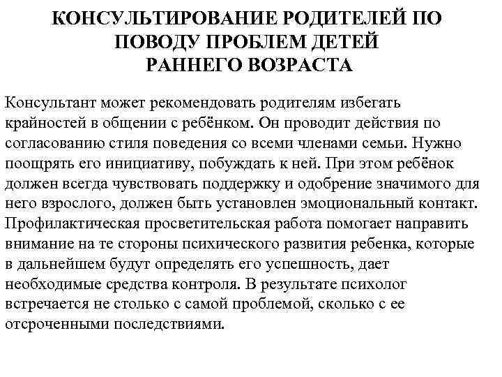 Проблемы консультирования родителей