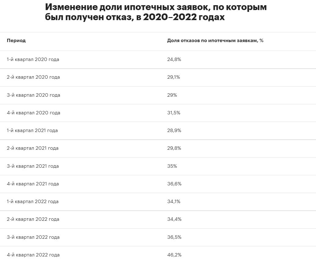 Процент отказа по ипотеке