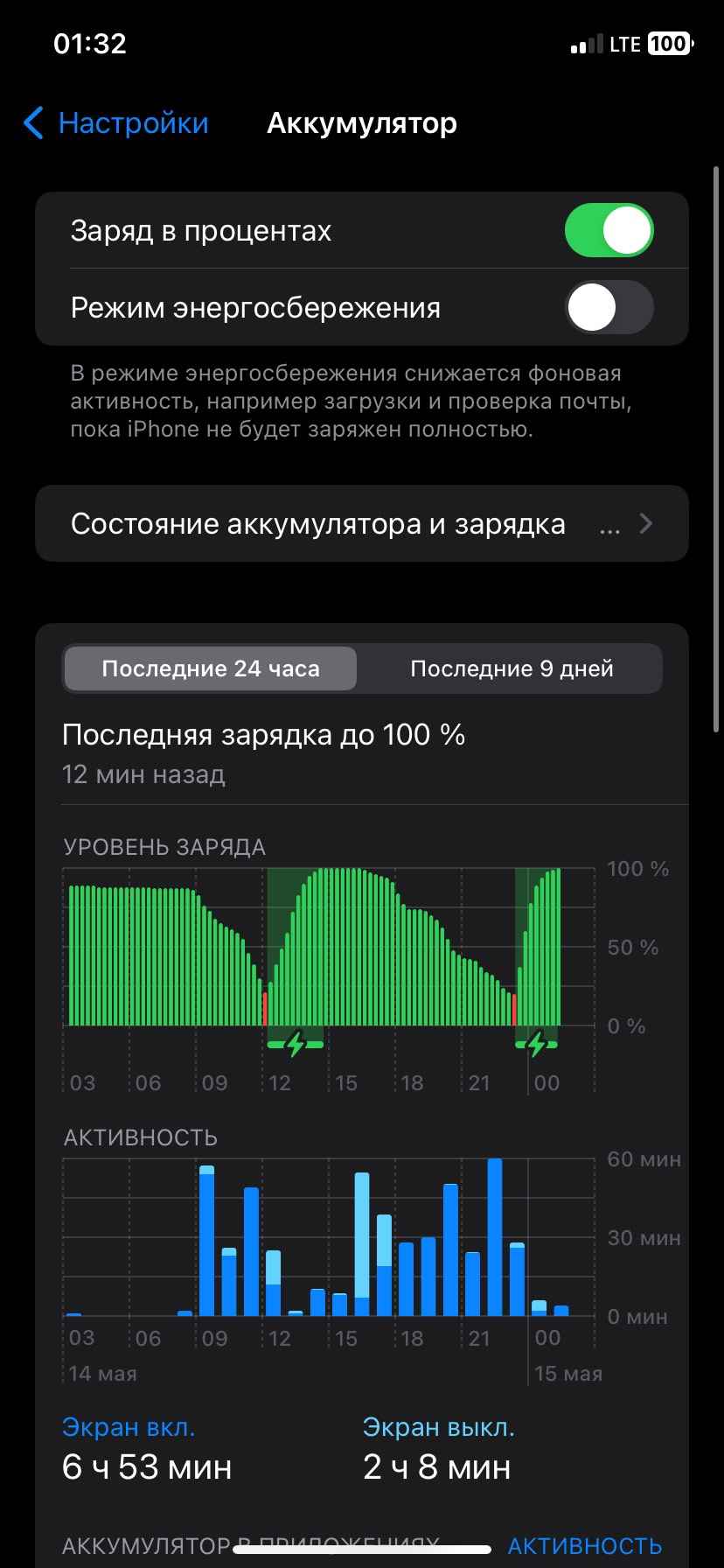 Процент заряда батареи на айфон