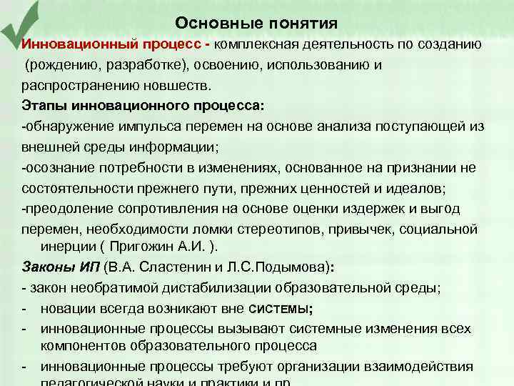 Процесс инновационной концепции