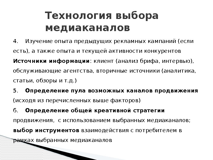 Процесс выбора медиаканалов включает
